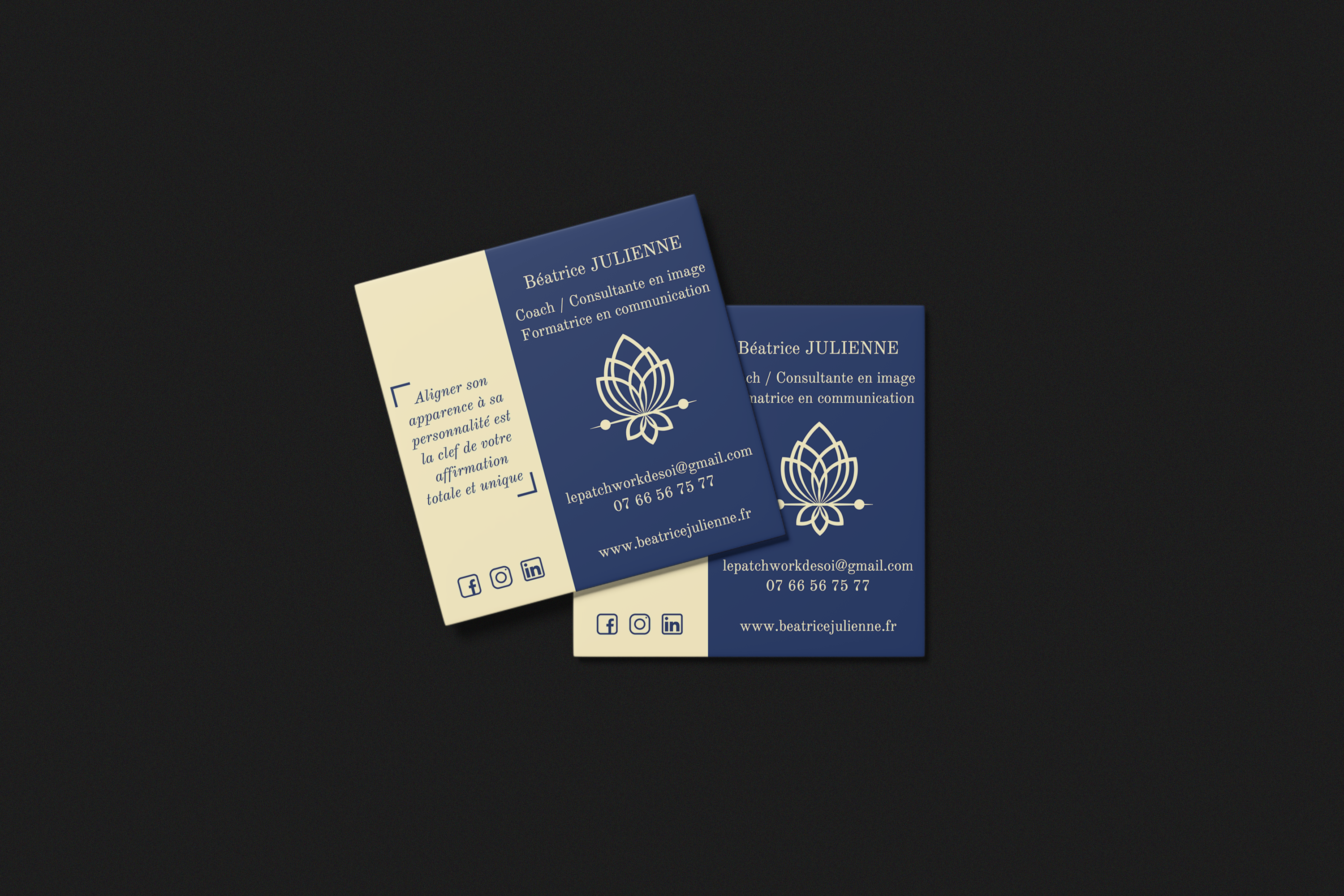Elle a fait appel à l’agence Papillon Multicolore pour la création de son identité visuelle. Allant de la création du logo aux cartes de visite, l’agence s’est occupée de définir la charte graphique pour son entreprise.